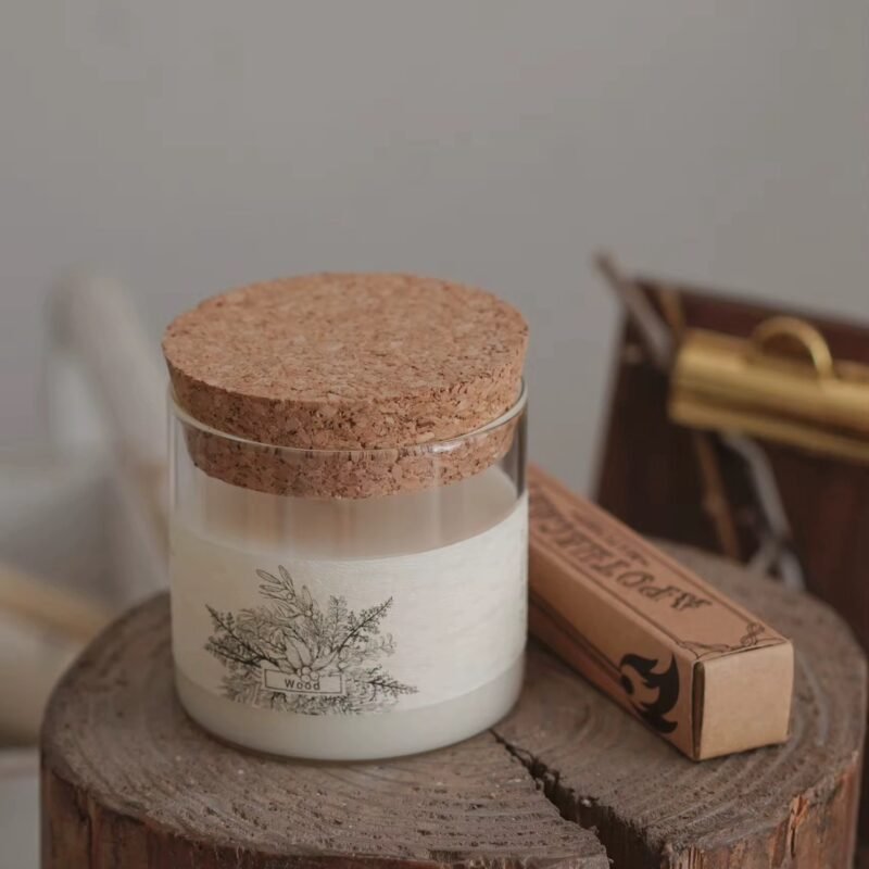 كاسة زجاج شفاف كبير – 600 مل مع غطاء خشب بامبو