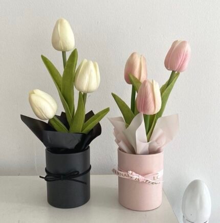 كيس هدايا ورد – لون ابيض مع اطار ذهبي