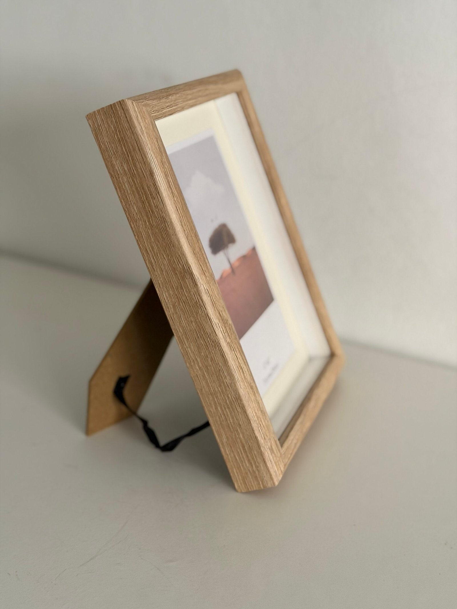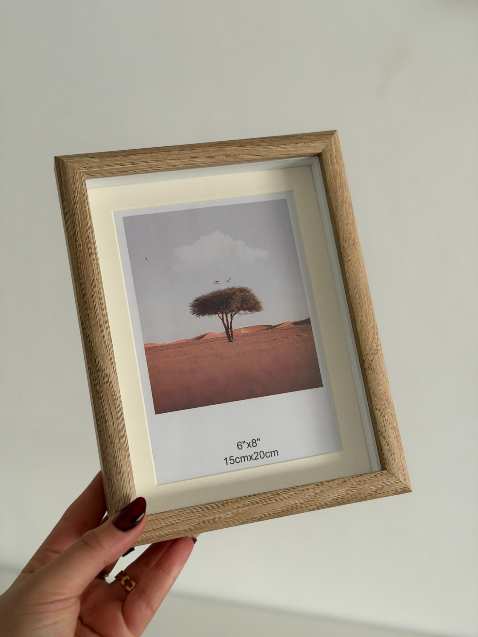 إطار خشبي عريض بلون البيج محايد وأنيق.