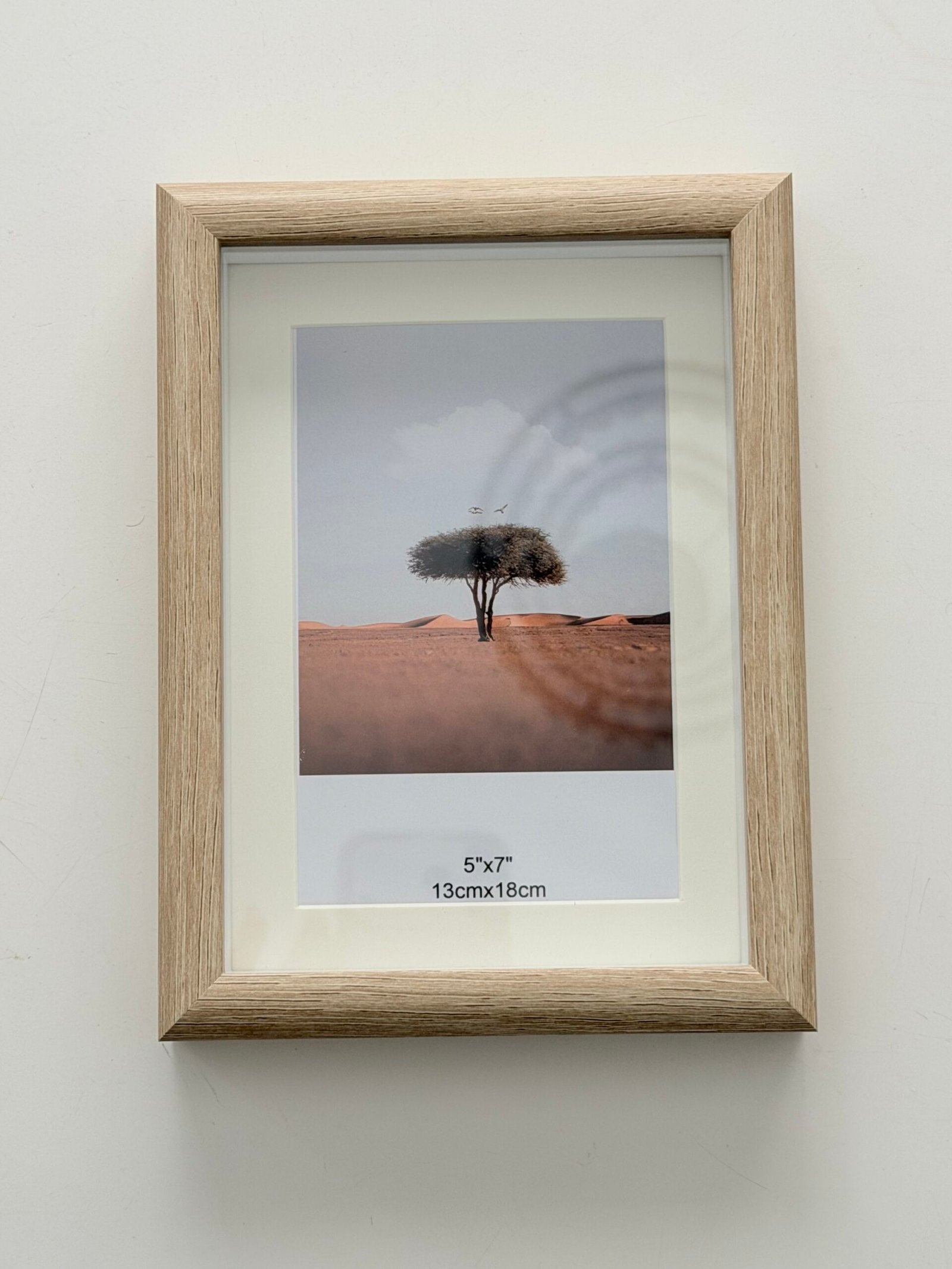إطار خشبي عريض بلون البيج محايد وأنيق.