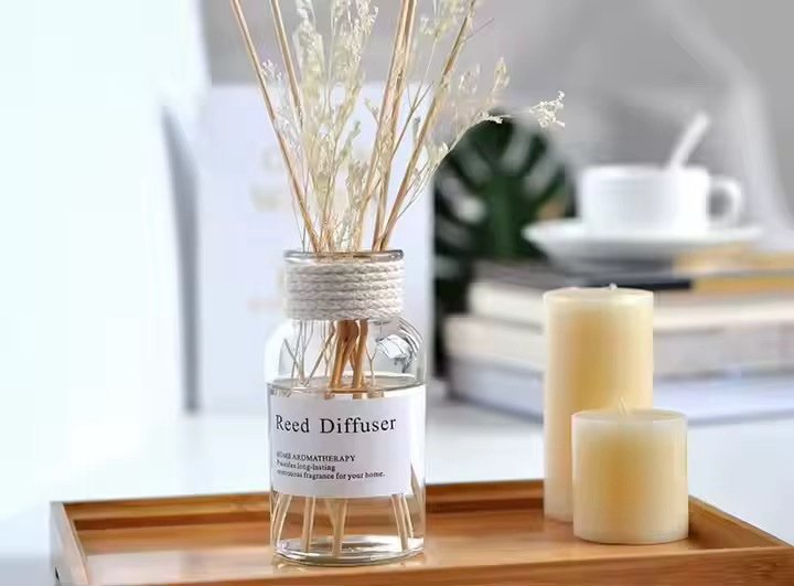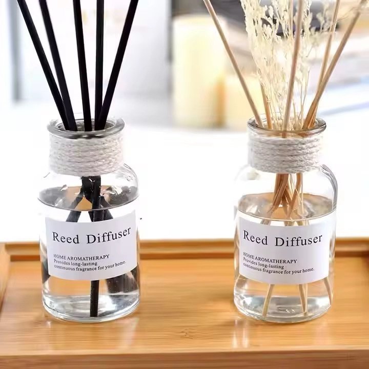 · التأثير: يخلق حضوراً أنيقاً وحديثاً، يضخم الإحساس بالمساحة بالنقاء والوضوح، ويظهر تفاصيل الأعواد والسائل كجزء من التصميم.