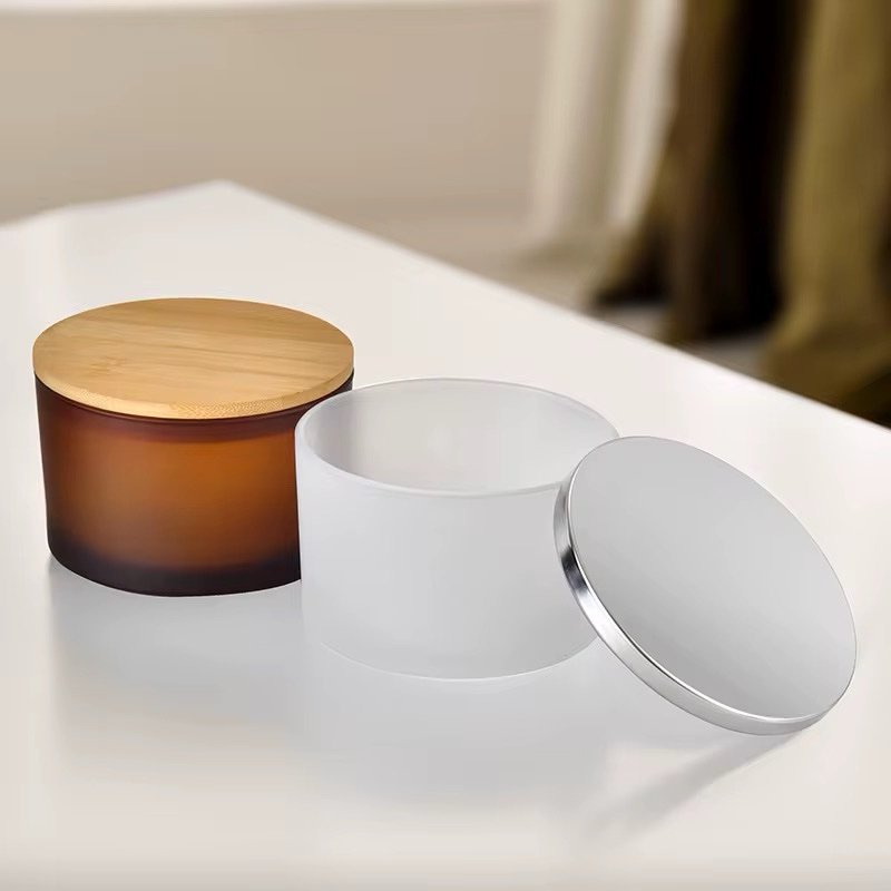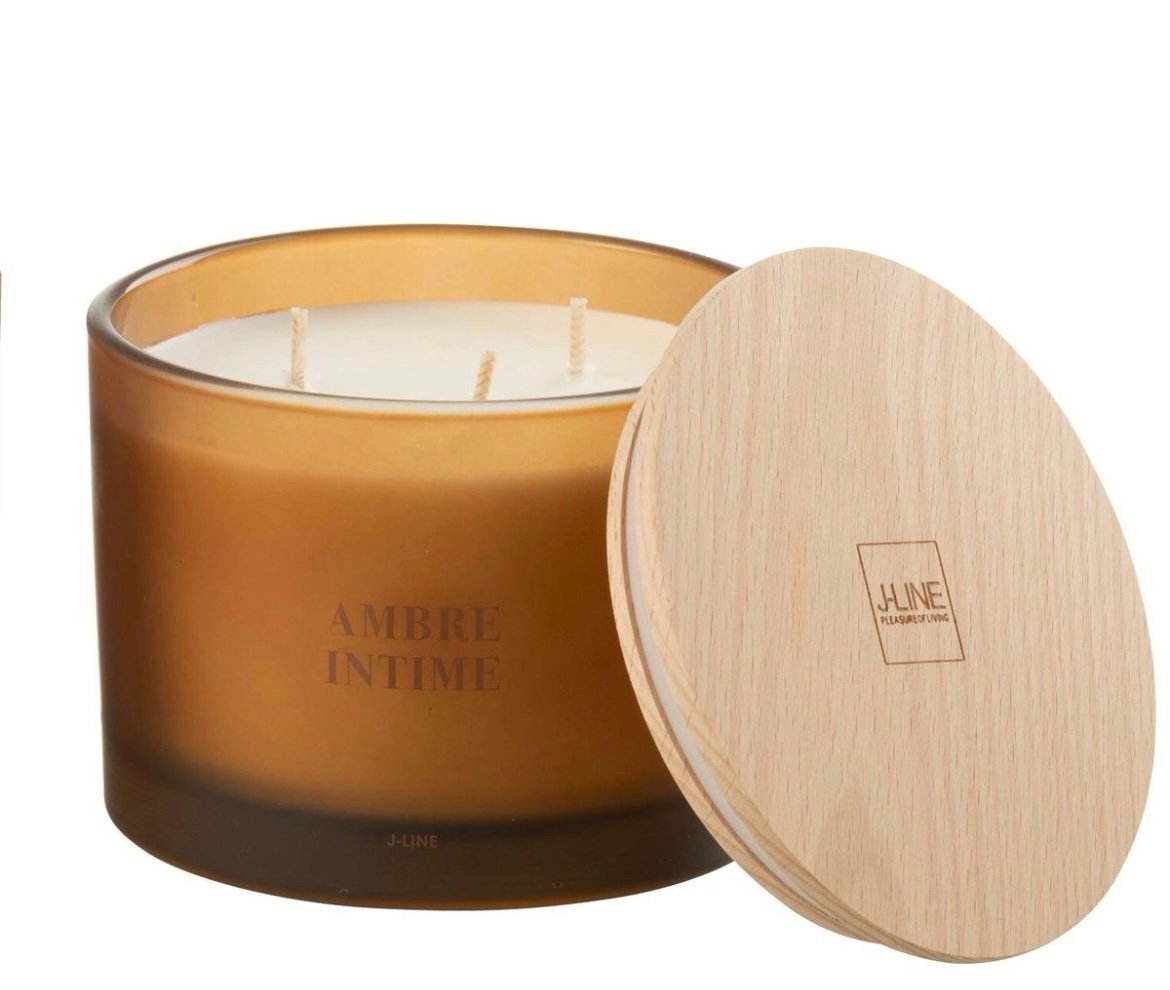 وعاء زجاج دائري كبير عنبري مع غطاء خشب بامبو